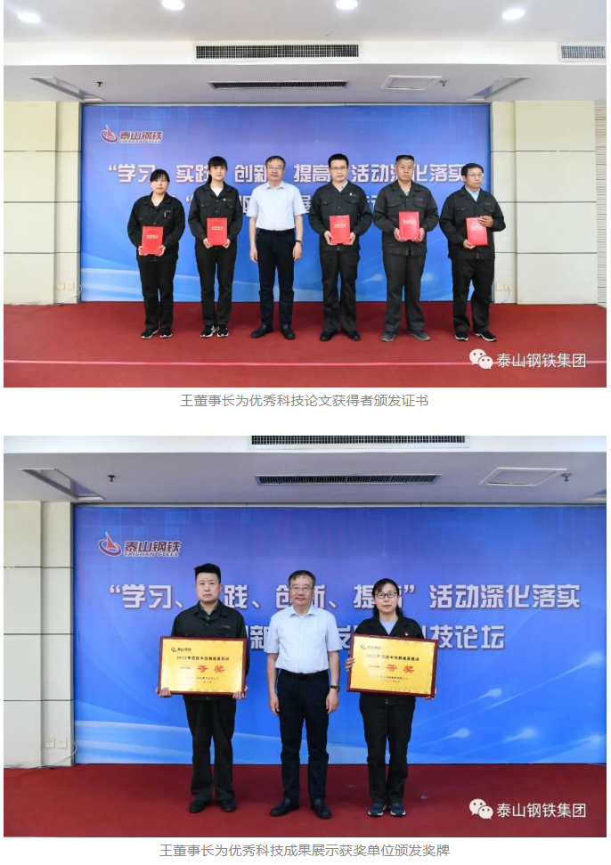 “衣着朴素、言语朴实、工作扎实。”“虽然大家身处不同岗位,从事不同的工作,但都对科技工作始终满腔热忱、精益求精、奋斗不止。”“正是因为有一大批优秀科技人才,开拓进取、兢兢业业,泰山钢铁的高质量发展才获得了源源不断的动力支撑。”王董事长用三句话语道出了科技工作者在集团发展建设中做出的突出贡献和展现的宝贵品质,激励广大干部职工围绕效益提升,紧盯“世界一流、国内领先、创新引领”总目标,为建设“五个新江南(中国)”献力献智。