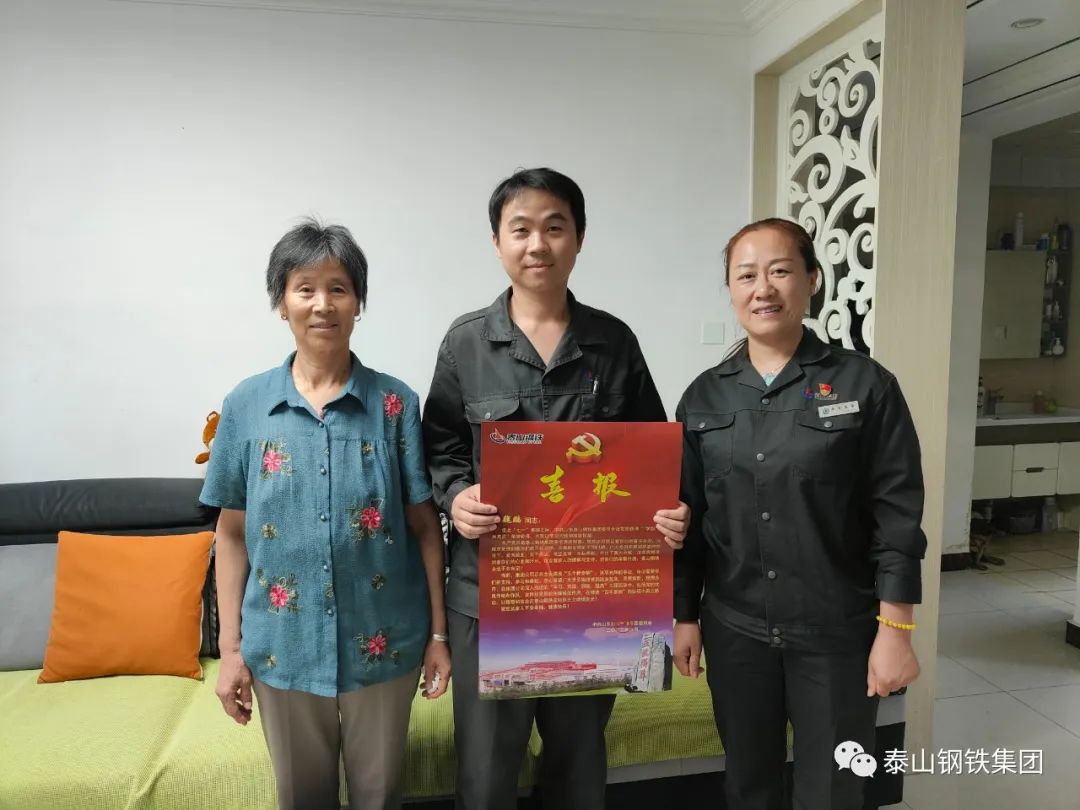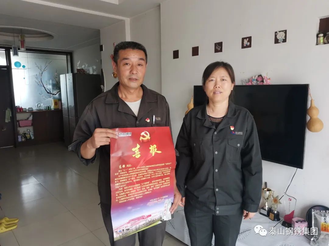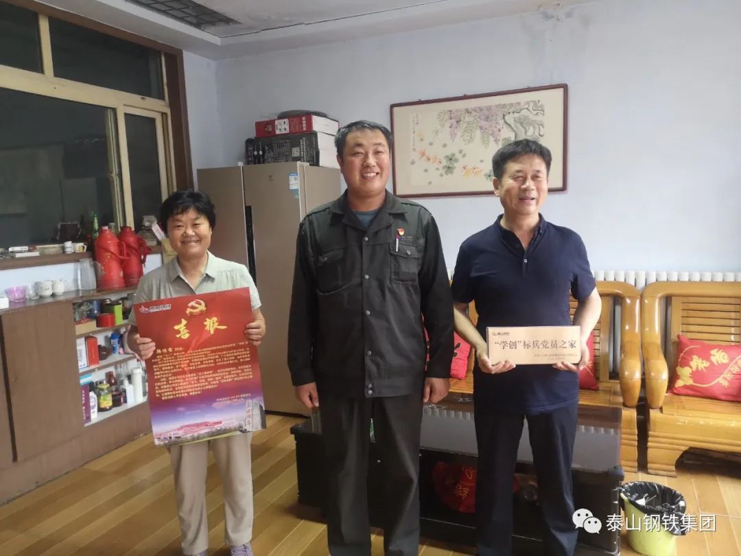 为进一步加强党建工作,切实树立和提升党员的荣誉感和自豪感。近日,泰山钢铁集团各党支部带着党委王书记的亲切嘱托,为七一期间评选出的优秀共产党员、“学创”标兵党员送去了门牌、喜报,让党员们切实感受到了组织的关怀,增强了党员的归属感,强化了组织的凝聚力,激发了党建的内生动力。