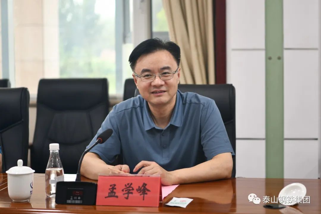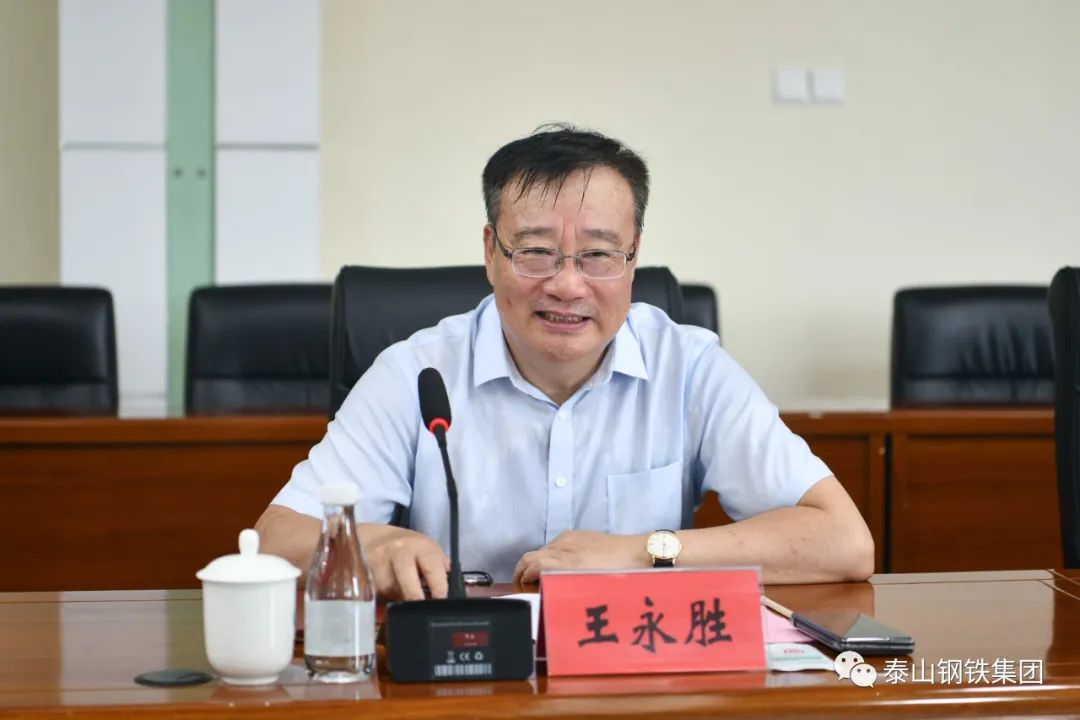 8月13日上午,济南市民营经济发展局党组书记孟学峰一行到泰山钢铁集团调研。在集团经贸楼会议室,董事长、党委书记王永胜汇报了集团近期的生产经营情况。