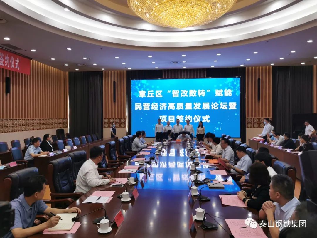 为深入贯彻落实全省民营经济高质量发展工作会议和全市数字济南建设推进大会精神,推动《参柬》调研成果落地转化,9月27日上午,章丘区举办“智改数转”赋能民营经济高质量发展论坛暨项目签约仪式。特邀清华大学电子工程系教授、博士生导师、IEEE fellow、长江学者、国家杰青杨华中,齐鲁师范学院党委委员、副校长孙正,山东大学机械工程学院院长、教授、博士生导师万熠出席,市政协副主席、市工商联主席刘梦海,章丘区委副书记、区长边祥为,章丘区委常委、组织部部长、统战部部长张新建参加活动。市工商联副主席,集团董事长、党委书记王永胜参加仪式。