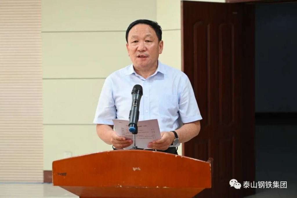 6月30日,泰山钢铁集团在经贸楼三楼会议室召开庆祝建党102周年暨精品钢绿色转型项目动员大会。集团董事长、党委书记王永胜出席会议并讲话。