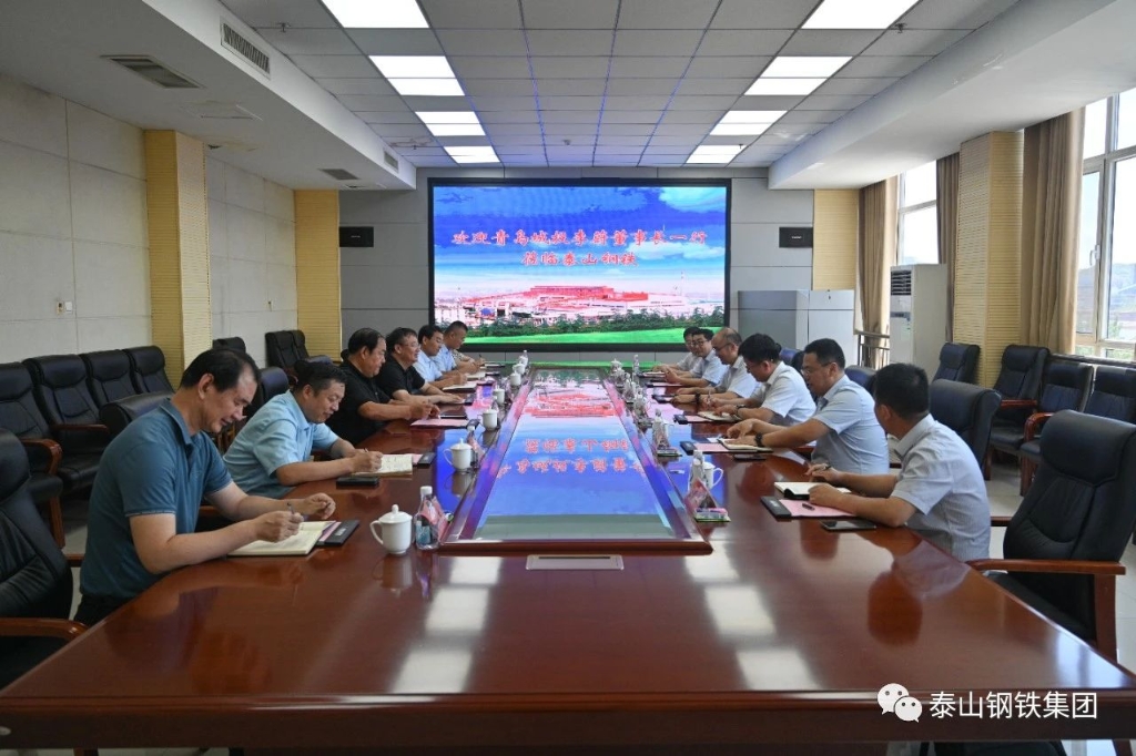 8月15日,青岛城投集团党委书记、董事长李蔚一行来泰山钢铁集团交流,集团董事长、党委书记王永胜热情接待客人,并在经贸楼五楼会议室座谈交流。