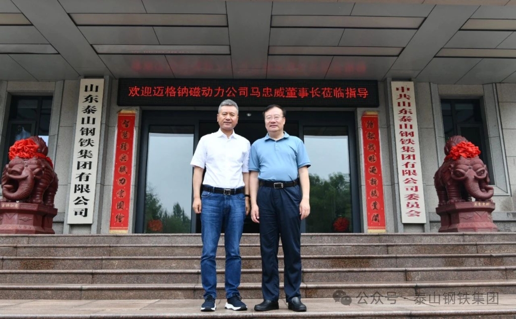7月9日,迈格钠磁动力股份有限公司董事长马忠威来访。集团公司党委书记、董事长王永胜热情接待了客人一行,并与客人就制造业与高新技术相互促进、加快未来产业布局、推动新兴产业战略合作进行了深层次交流探讨。