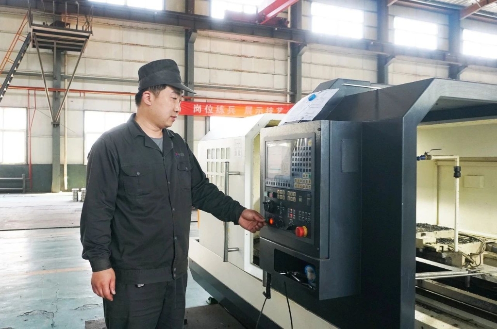 入职前,他曾有过一段机加工质检员的工作经历,对机床运作流程比较熟悉,操作机床时也很快上手。但正当他准备大展拳脚时,一次实际操作却给他敲响了警钟。他首次车削轧辊时,因操作失误将轧辊圆弧过渡处车削过深,“那一刻我才明白,理论知识和实际操作的差距有多大,必须沉下心继续练。”栾亮说。于是,他开始刻苦地钻研技术,利用废料反复练习,逐渐掌握了机床加工的操作技巧。