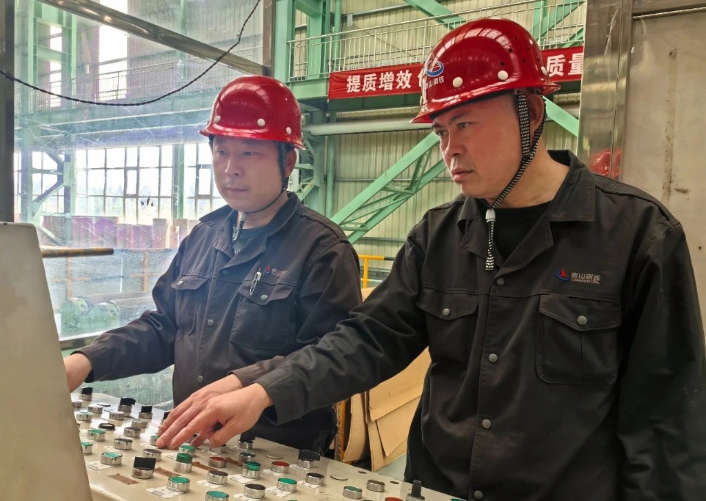 在轧钢作业区重卷机组旁,一场关于切边料规格切换的“师徒教学”正在紧张进行。操作工田建伟紧盯着师傅焦玉云手中的操作,生怕错过任何一个细节。此前,从1250规格切边料转换至1000规格的操作一直是他的技术短板。“每次切换都担心出现尺寸偏差,影响成品质量。”田建伟坦言。
