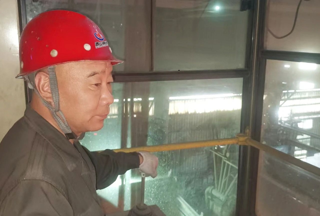 沿着厂房的钢架梯拾级而上,记者见到了泰山钢铁集团热轧部运行车间主跨行车工亓新生。在不足两平方米的操作间里,转炉蒸腾的热浪将空气烤得发烫。亓新生紧攥着控制手柄,目光透过玻璃,牢牢锁定住即将吊运的钢包,即便额头的汗珠顺着安全帽边缘不断滑落,也没有分散半分注意力。