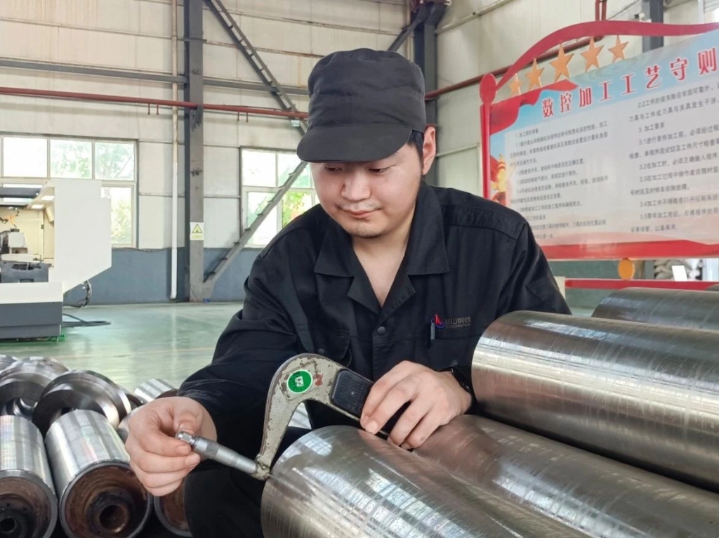 在此后的工作中,吕泽群立足本职岗位,在干中学、学中干,积极投入到各项加工任务中,从实践中提升自己的技术水平。一次,车间承接了为冷轧加工定距环的任务。在此过程中,需要钻24个定位孔,位置公差和孔间距精度必须控制在0.04毫米以内。由于加工精度要求极高,普通数控车床已无法满足加工需求,车间决定启用全新的数控龙门加工中心。面对新设备复杂的操作界面与编程系统,吕泽群主动承担任务,白天跟老师傅学习,晚上钻研机械加工工艺与编程知识。一个月后,他不仅熟练掌握设备操作,还总结出高效加工方法。加工中,他发现环类件定位编程耗时长,便与调度员魏铖合作设计专用工装卡盘,将定距环加工速度提升50%。此后,他们还将该方法应用在不锈钢驱动辊法兰加工中,单件加工时间缩短20分钟,起到了良好效果。